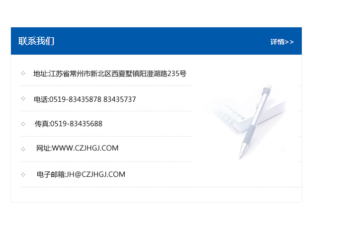 傳真:0519-83435688    郵編:213135    網址:WWW.czjhgj_com.shenkaiying.com    電子郵箱:JH@czjhgj_com.shenkaiying.com